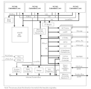 每个内核带有4个运算逻辑单元(ALU)、内部存储器、写缓冲器和两个中断控制器。MSC8122面向高带宽、高计算能力的DSP应用,并已针对无线转码和分组电话以及高带宽基站应用而优化。MSC8122提供增强的性能,同时还能保持低功耗,并大幅降低了系统成本。