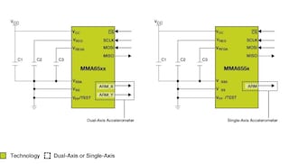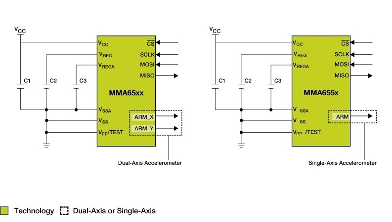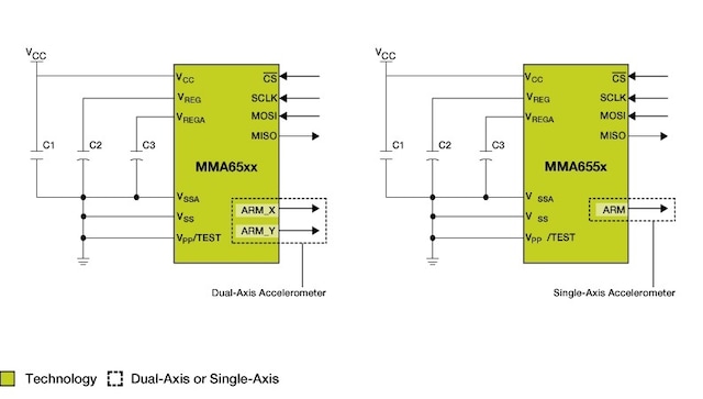 基于MEMS的MMA65xxKW单轴和双轴惯性传感器用于汽车安全气囊系统的主电子控制单元(ECU)。