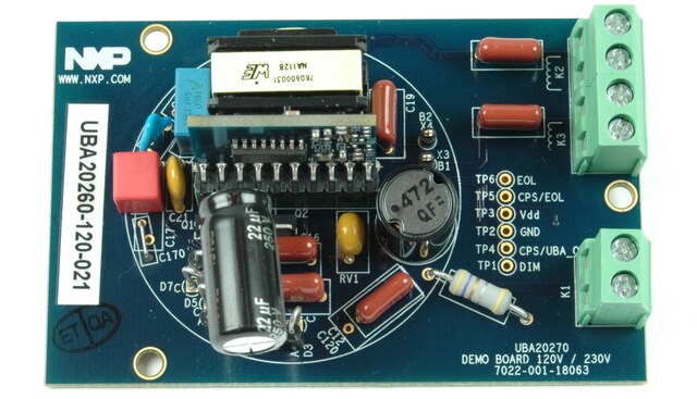 UBA20260电路是一个半桥驱动器IC设置,用于驱动灯具电流约为240 mA的典型23 W灯头,也可以驱动额定灯具功率为20 W的类似灯具类型。额定市电电压为230 V或120 V (RMS)时,从市电获取的总功率约为23 W。UBA20260电路板可以轻松配置来驱动不同功率等级的不同紧凑型荧光灯(CFL)。通过更换电感分接头并安装不同的灯电容器,就可以驱动不同的CFL。快速参考恩智浦 文档类别