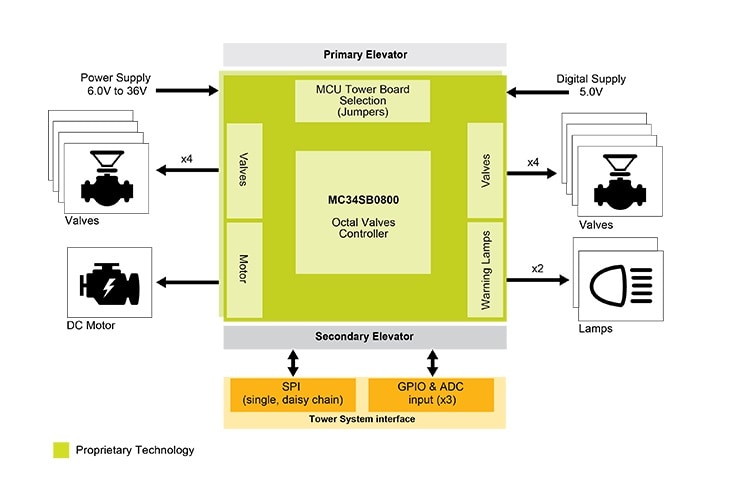 Evaluation board - SB0800, Solenoid/High Side predrivers, 8 CH / 2, 36 V, 2.25 A for LSD.