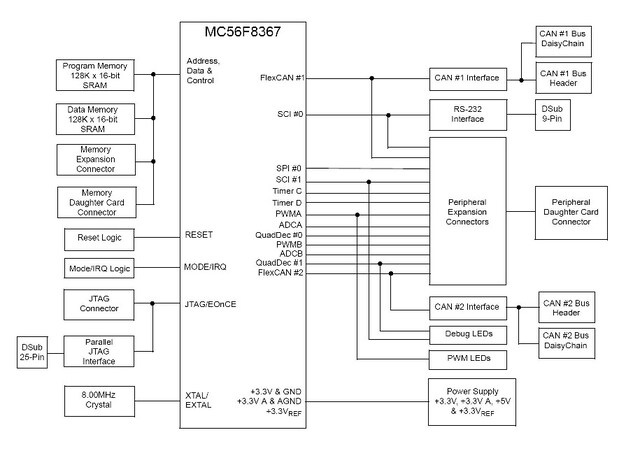 The MC56F8367EVME is a low-cost kit that contains everything you need to quickly evaluate the features and capabilities of the NXP® MC56F8145-67 and MC56F8345-67 DSCs.