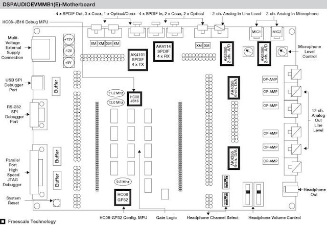 The DSPAUDIOEVM Evaluation Module is used to demonstrate the abilities of the NXP® Symphony® DSP family and provide a hardware tool to allow development of applications that use these devices.