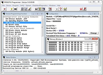 PROGCFZ还包括命令行版本的编程器软件(该软件名为CPROGCFZ,支持脚本编程)。PROG和CPROG都非常适合开发、生产线编程,或现场固件更新。为了提供功能完备的生产解决方案,P&E还提供了独立在线闪存编程器,名为 Cyclone MAX,非常适合生产编程和现场维护。