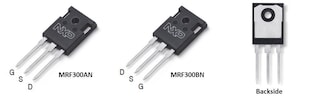 MRF300AN和MRF300BN这些设备适用于HF和VHF通信,工业、科学和医疗(ISM)以及广播和航天应用。这些设备非常耐用,最高性能达250MHz。