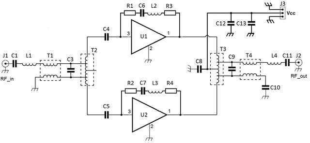 该评估板在推挽配置中使用两个恩智浦BGA3018信号放大器,从而产生更好的二阶失真(IP2