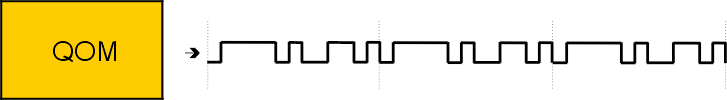 The QOM function generates complex output pulse trains without CPU intervention using a sequence of output matches. An output match occurs when a user-defined value is matched by the value of an internal timebase. When an output match occurs, a user-specified pin state is driven on the output pin. The eTPU QOM function generates multiple output matches using a table of offset times. These offset times, along with the corresponding pin states, are stored in Data Memory. The table size is user-programmable. Various modes of queue operation are supported.